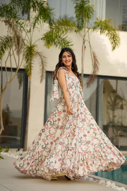 Heavy Faux Georgette With Fully Flair Set (multi-color)